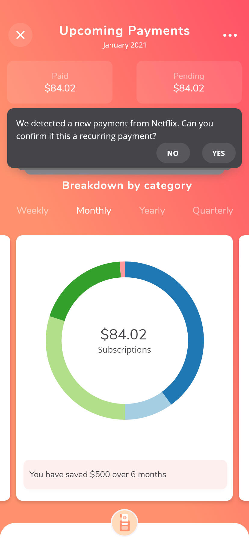 Using existing data, Chango provides notifications and reminders to recurring & bill payments
